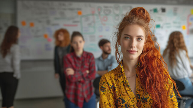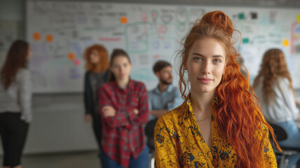 Confident professional presenting crm chart to colleagues