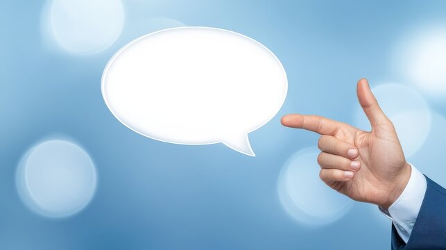 Communicating through the digital age, a hand pointing towards speech bubble.