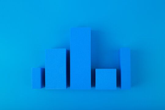 Creative business concept. Blue graph diagram or performance chart with rise and fall dynamic against blue background with copy space. Chart for marketing, annual or corporate report or profit growing