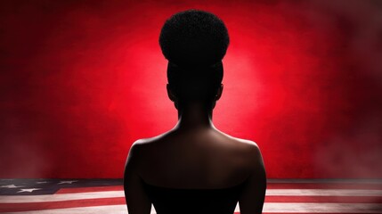 Person holds American flag in golden wheat field at sunset, celebrating freedom and patriotism in rural setting.