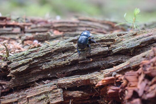 close up of a Anoplotrupes stercorosus, forest dung beetle