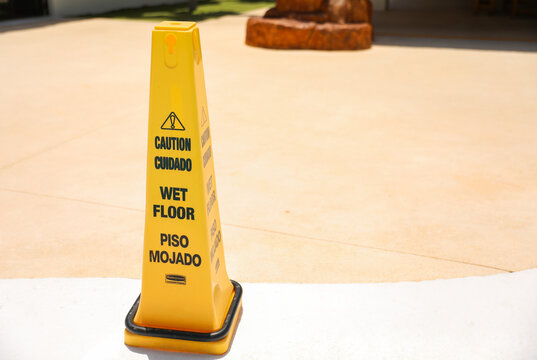 Caution slippery surface sign with English and Hungarian Vigyázat, csúszós felület