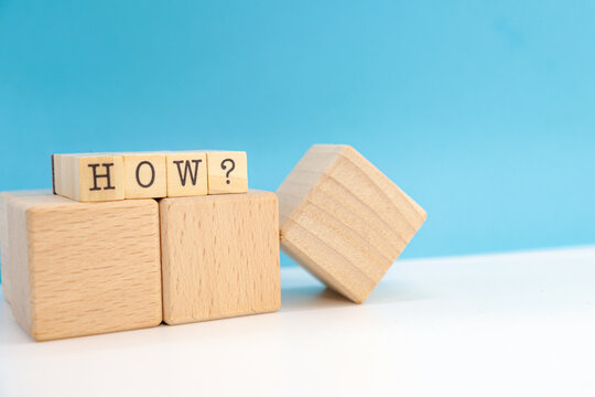 Wooden cube with question mark symbol and word PROBLEM SOLUTION QUESTION CORRECTION.