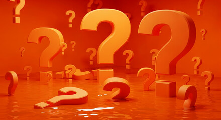 Person looks thoughtful while searching for answers among questions, with speech bubbles and text fields present.