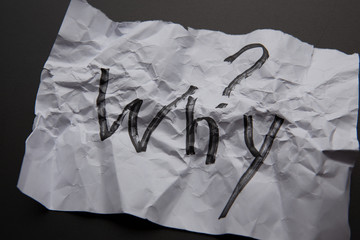 handwritten text Why as Question. written on white crumpled paper with black marker. Concept meaning Asking for specific answers of something interrogate