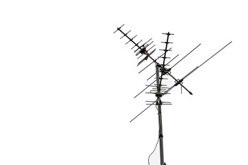 Radio antenna towers rising above dense cloud cover on mountain peak