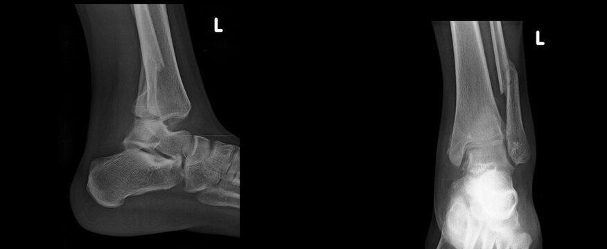 Left Ankle joint fracture dislocation Xray Antero Posterior and Lateral View