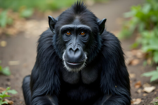Chimpanzee Portrait Looking Forward with Curious Expression