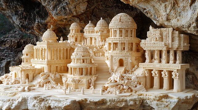 Mayan observatory with priests studying the movement of the stars and planets surrounded by intricately carved stone structures