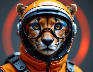 Adorable cartoon lion astronaut riding a rocket through outer space with