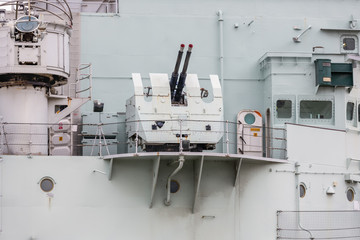 Anti aircraft guns at HMS Belfast battleship in London, the UK