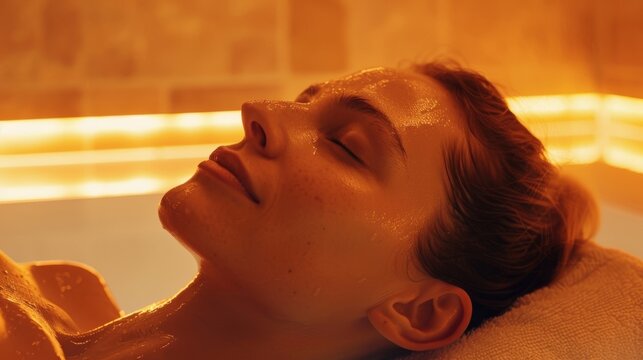 Woman receiving LED light therapy for anti-aging at a spa. Concept LED Light Therapy, Anti-Aging Treatment, Spa Experience