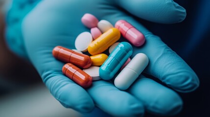 Blue antibiotic capsule pills on white background. Prescription drugs. Antibiotic drug resistance. Antimicrobial capsule pills. Pharmaceutical industry. Healthcare and medicine. Pharmacy product.