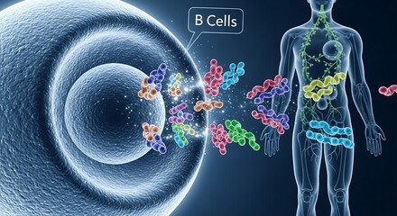 antibodies attacking pathogens, showing an immune response in the body, banner