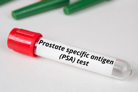 doctor with Blood tube and catheter for PSA Prostate specific antigen test in biochemistry lab. Blood sample of patient for PSA Free and PSA Total tests in laboratory