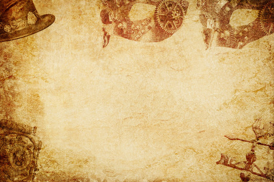 steampum mask n hat paper background