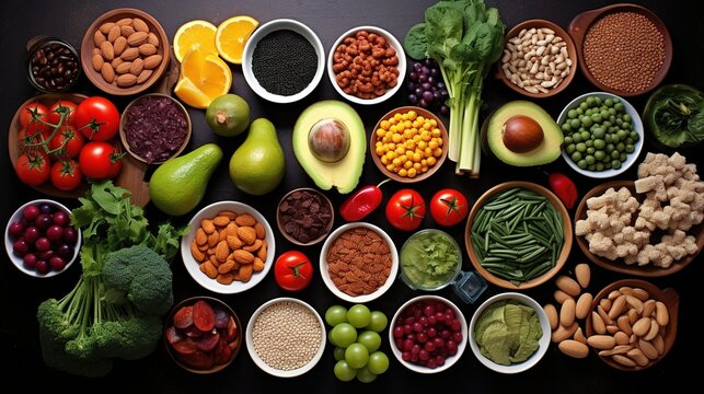 Healthy plant based food, foods for lowering cholesterol, portfolio diet products, top view