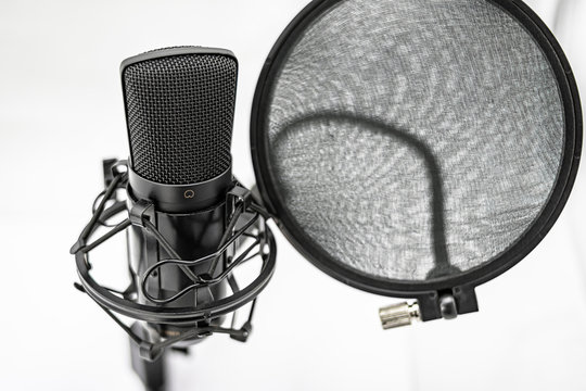 Studio Microphone with Built-in Antipop Filter. Concept Audio Recording, Studio Equipment, Antipop Filter, Professional Sound Setup
