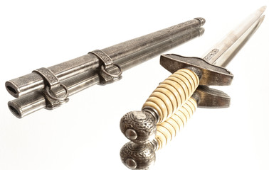 Antiquary Stuff on the Wall. Used Tools. Obsolete Things. Black and White Photo