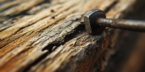 Close Up Of Aged Wooden Mallet On Rustic Wood