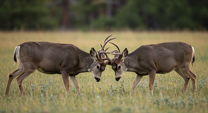 Majestic Mule Deer Lock Horns in a Prairie Showdown