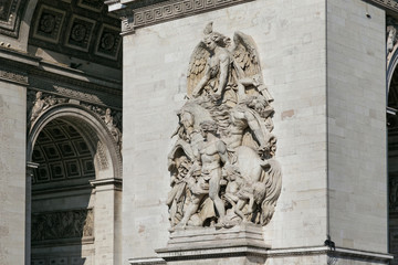 Sculptural group on the Triumphal Arch in Paris, France. La Resistance (1814) by Antoine Etex. Commemorates the French Resistance to the Allied Armies during the War of the Sixth Coalition.