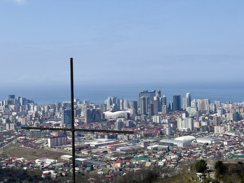 Aerial view of the city of Batumi from the top of the Anuria Mountain, Georgia