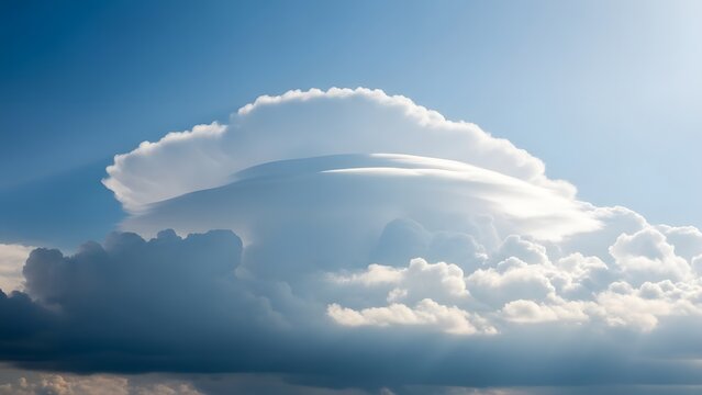 Expansive cumulus cloud formation under blue sky featuring a flat anvil top