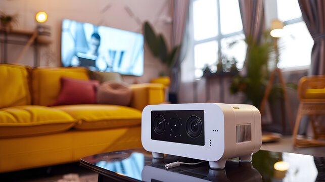 "High-tech smart projector with built-in streaming apps for entertainment and presentations in any setting."