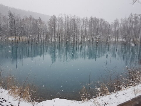 Cloudy weather in Sapporo, Biei, Japan. Blue Pond