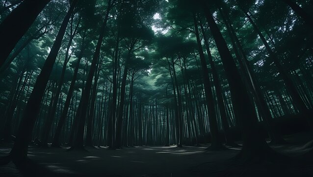 Abyssal Ascent: Japan's Aokigahara Forest Under Moonlight.