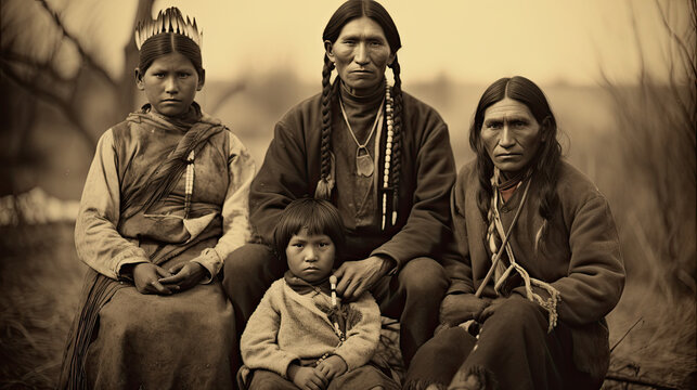 Old Native Senior American Indian family with selective focus background