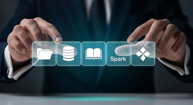 Abstract Apache Spark technology with retro 90s design elements for professional stock catalog.
