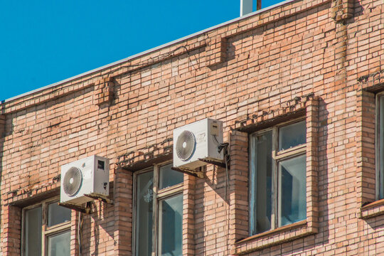 Air conditioner units connected to apartment building