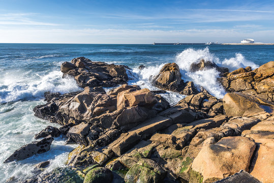 Rocky beach of Atlantic Ocean in Porto, Portugal
