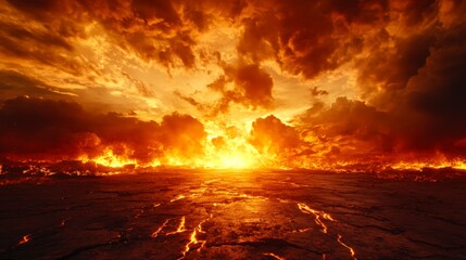 Fiery apocalyptic energy explosion dramatic burning landscape surreal fantasy scene