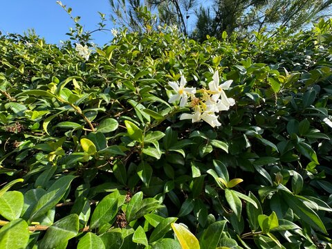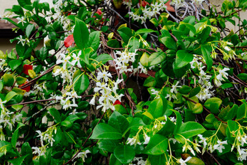 Chinese star jasmine flowers (Trachelospermum jasminoides) in bloom