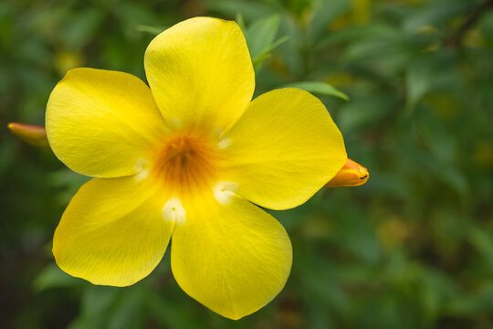 Golden bell flower, golden trumpet flower, buttercup flower or Allamanda cathartica flower.