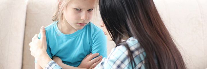 Little offended girl is reassured by her mother