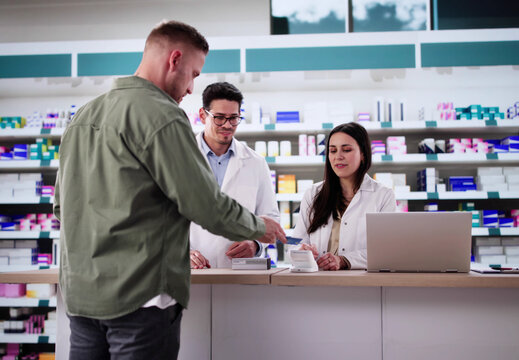 Hispanic Pharmacist Secures Debit Card Transaction