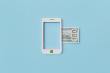 Smartphone mockup with 100 dollar bill.
