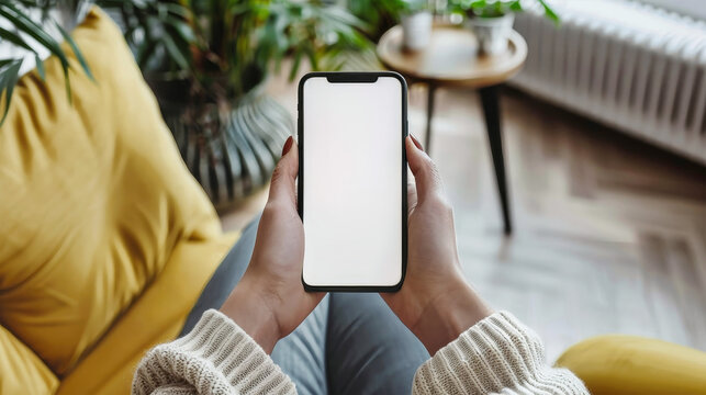 Woman browsing on smartphone in cozy home setting
