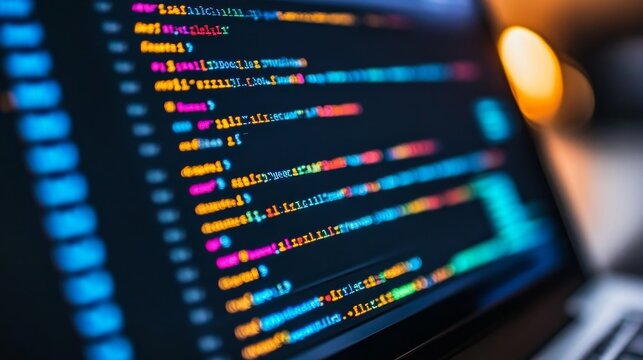 Colorful, Abstract Programming Code on a Computer Screen. The Future of Software Development.