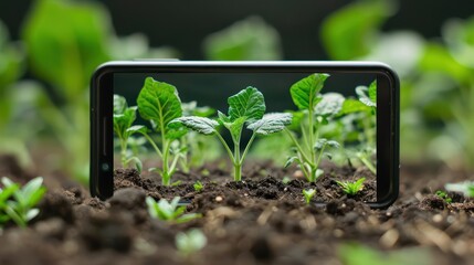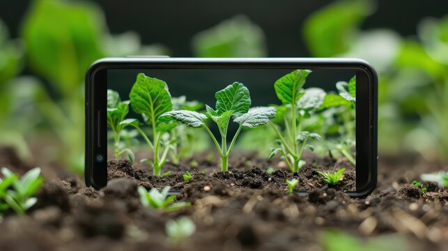 Augmented reality apps offer virtual tours of vegetable growth from seed to harvest, educating consumers about farming practices in an interactive way, with copy space