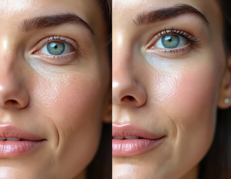 Side-by-side comparison of facial wrinkles and skin texture before and after treatment for skin rejuvenation
