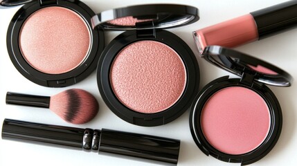 Colorful Makeup Products Spread on White Background for Beauty and Fashion Aesthetics