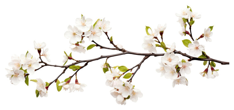 Blossoming branch of apple tree isolated on a white background. Fruit tree flower