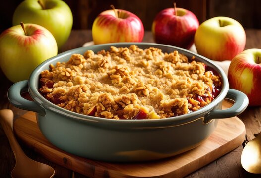delicious warm apple crisp golden brown topping juicy perfectly baked sweet perfection, dessert, baking, fruit, cinnamon, sugar, oats, butter, flour, vanilla