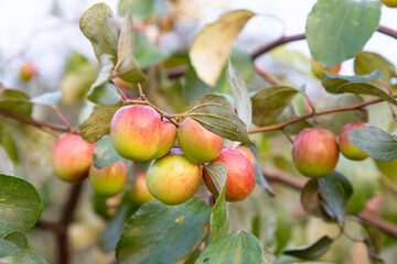 Fruit tree with unripe Red jujube fruits or apple kul boroi  in the garden
