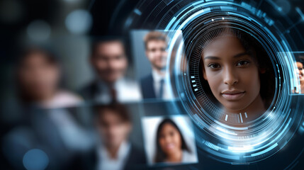 Intelligent powered recruitment system scanning potential job candidates defocused background automation in personnel corporate hiring visualization talent discovery